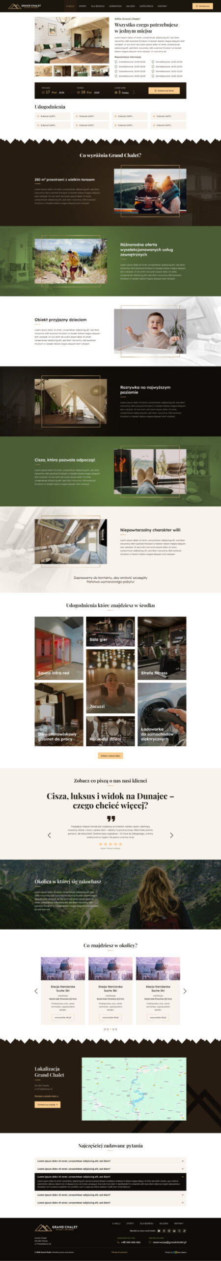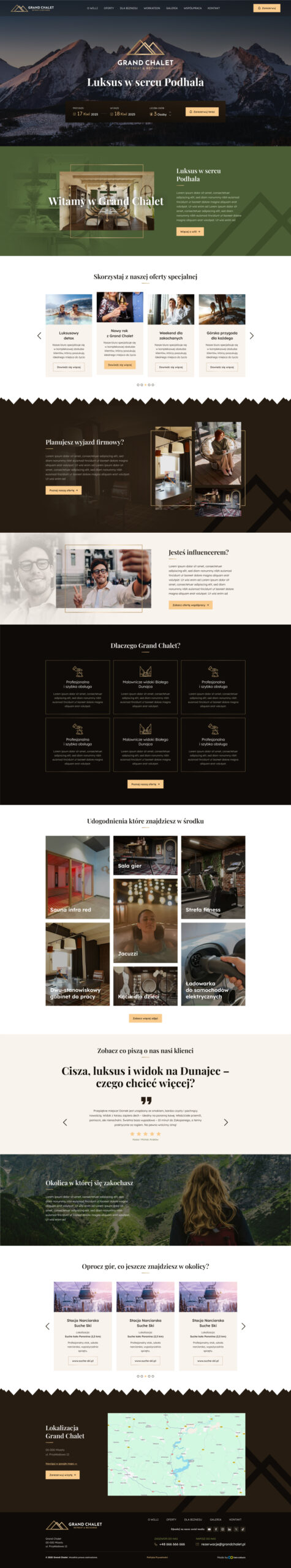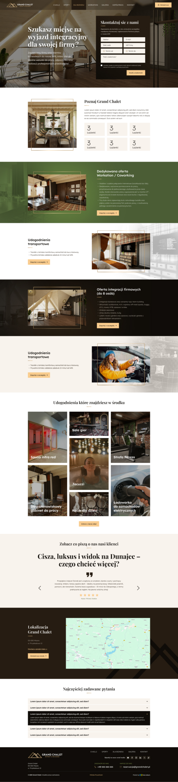 Naszym zadaniem było zaprojektowanie i stworzenie estetycznej, a zarazem funkcjonalnej strony internetowej dla Grand Chalet – luksusowego domu położonego w sercu Podhala. Celem było stworzenie przestrzeni online, która nie tylko odda elegancję i komfort obiektu, ale również uprości proces rezerwacji dla gości.
